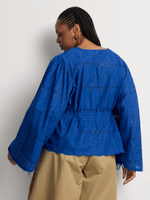 Feminine and pretty, our Anglaise V-neck Blouse is made from lightweight cotton with a V-neck and long sleeves. Wear it with wide-leg denim or denim shorts and complete the look with strappy sandals and a woven bag.