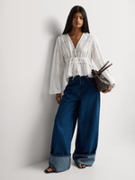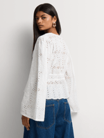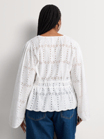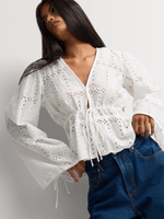 Feminine and pretty, our Anglaise V-neck Blouse is made from lightweight cotton with a V-neck and long sleeves. Wear it with wide-leg denim or denim shorts and complete the look with strappy sandals and a woven bag.