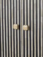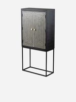Elevate your space with the stunning Bonzai cabinet. Meticulously crafted from solid wood and powder-coated metal, featuring intricate bone inlay detailing. Perfect for use as a storage or drink’s cabinet.