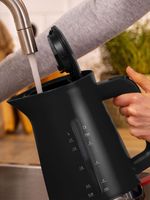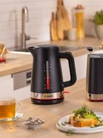 The Bosch MyMoment Kettle combines stylish design with practical functionality, making boiling water quick and convenient. Its stainless steel body with a matt-glossy finish adds a modern touch to any kitchen. The interior LED light illuminates while boiling, and the cup indicator helps save energy by boiling only the amount needed. Ergonomic operation allows the lid to open easily at the touch of a button, while triple safety features, including automatic shut-off, overheat and boil-dry protection, and lift switch-off, ensure peace of mind. With a powerful 2400W motor, water heats up quickly, saving time for your daily routine.