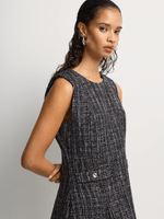Our Boucle Fit & Flare Dress is a chic choice for a special occasion or event. The flattering cut features a fitted V-neck top with a cinched waist that flares out into a cute mini-length skirt. Add strappy heels and a shoulder bag.