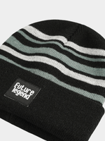 Stay warm and stylish with our striped beanie in grey, black, and green. Made of cozy acrylic, this beanie features an 'Future legend' label for a touch of fun. Perfect for adding a pop of color to any outfit.