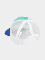 Get that effortlessly cool vibe with our green and blue 'Mountain' peak cap. Crafted from soft cotton for comfort, this cap is perfect for adding a touch of retro style to any outfit. With a peak to keep the sun out of your eyes, it's a must-have accessory for any casual look.