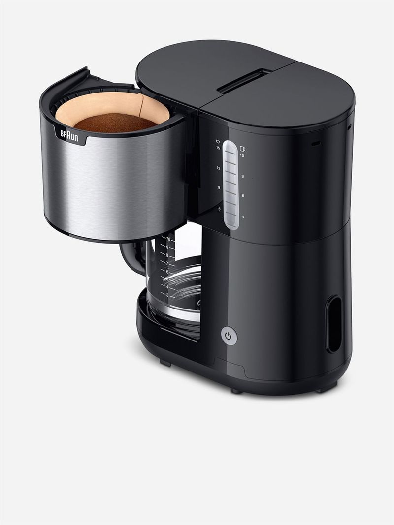 Make coffee for a crowd with the Braun PurShine Coffee Maker. Stainless steel exterior accents are both practical and attractive in a modern kitchen. The generously sized coffee pot lets you make up to 10 mugs or 15 smaller cups, ideal for a full house when hosting. The OptiBrewSystem ensures a consistent aroma while the AntiDrip System offers a drip-free pour even before the end of the brewing cycle. Easy to use, the EasyFill pivoting filter basket lets you fill the filter from the front or place it on your kitchen counter.