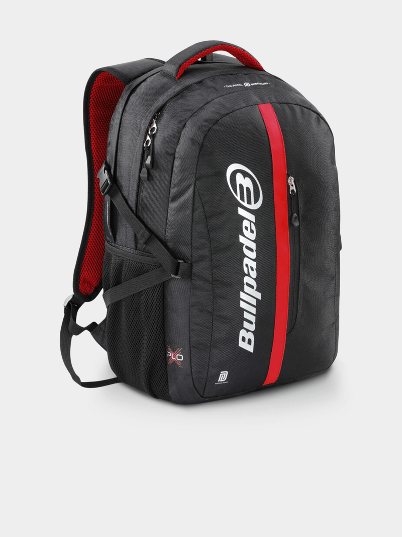 The Bullpadel XPLO black backpack 2025 is designed to meet the needs of the most demanding padel players. Inspired by Martín Di Nenno's XPLO padel, it offers a modern and functional design, perfect for carrying all your gear in an organized manner. Its spacious main compartment and its padded thermo compartment ensure the protection of your padels or electronic devices, while the elastic side pockets are ideal for water bottles and ball cans.