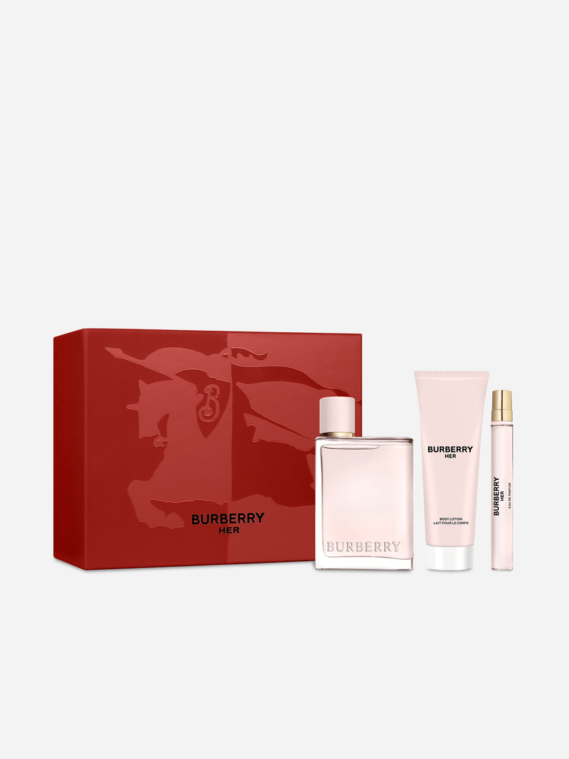 Treat yourself or your loved ones with a Burberry Her Eau de Parfum gift set. Burberry Her Eau de Parfum is the first gourmand fragrance with a British twist by Burberry.