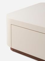 With its clean lines and smooth curves, the Calista Coffee Table brings a quiet luxury to your living space. The satin-finish lacquered body feels fresh and sophisticated, complemented by a warm walnut wood-look base.
