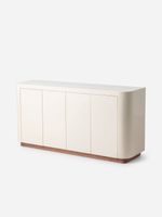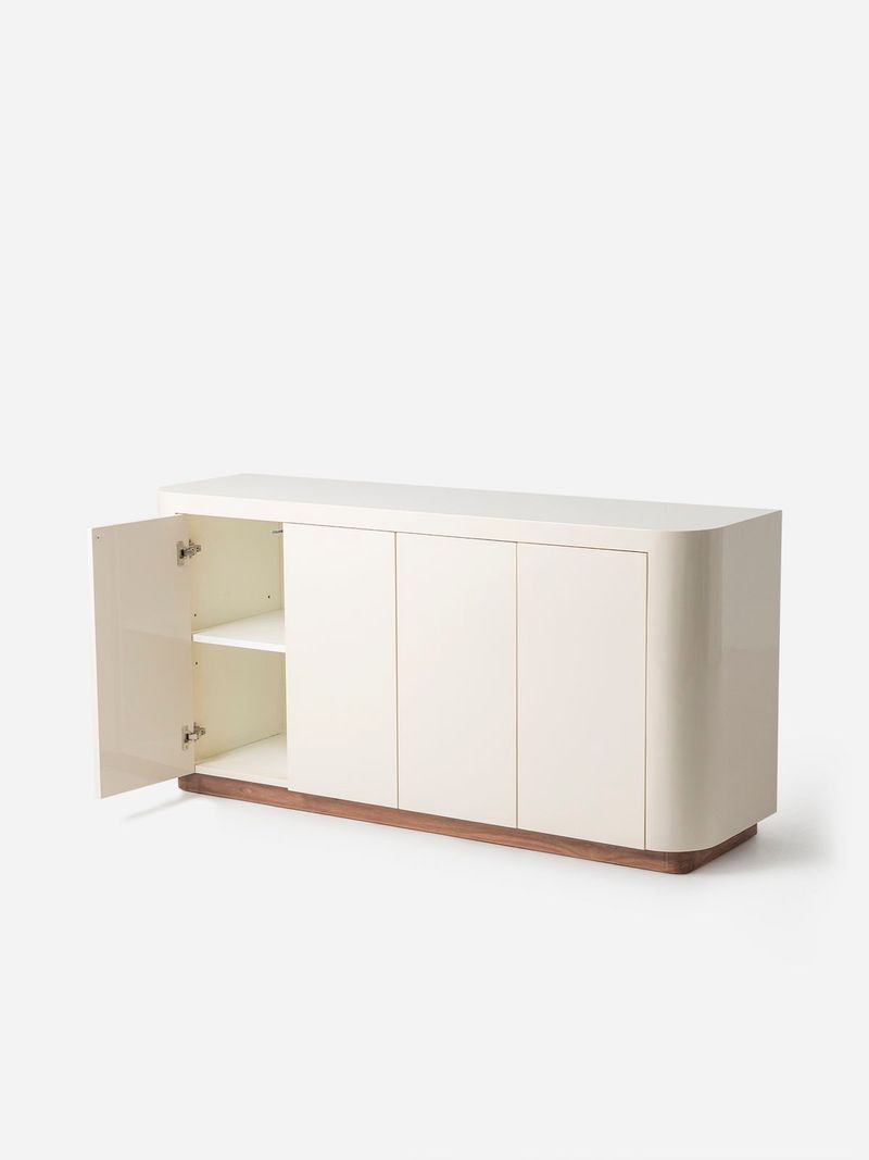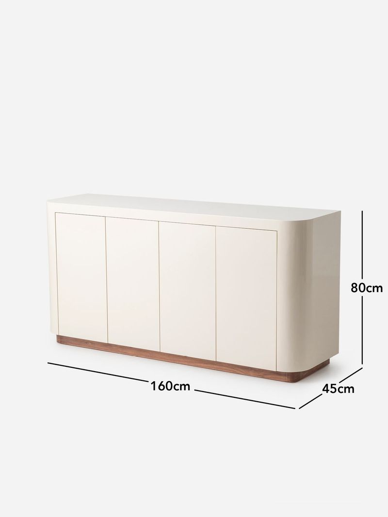 With its clean lines and smooth curves, the Calista Sideboard brings a quiet luxury to your living space. The satin-finish lacquered body feels fresh and sophisticated, complemented by a warm walnut wood-look base.