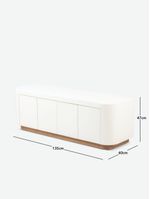 Upgrade your living room with the Calista Media Unit on a stylish walnut plinth. Crafted with MDF in a sleek satin white lacquer finish and walnut veneer. This piece has adjustable shelves versatile storage for all your media needs. Perfect for TV & media units in any modern space.