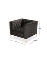 Update your living space with the Carin 1 Seater Couch in LuxGuard Velvet. This modern take on a classic sofa silhouette features a soft and inviting tufted design complemented by clean lines and considered details. Fully upholstered with elegant slim brass legs, Carin offers both comfort and style to bring a contemporary look with timeless appeal to your home.
