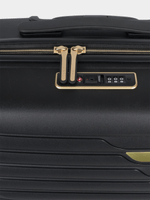 The 4-Wheel Carry-On Cellini Allure Trolley Case is perfect for a weekend away or a short business trp. This sleek and sophisticated travel accessory features 4-double glider wheels with gold detail, a telescopic pull handle and top carry handle as well as the super-useful Inside Story Packing system which also includes a wet pouch. The enticing Cellini Allure Collection has been crafted from Polypropylene to provide lightweight durability and flexibility with superb impact and water resistance. It also has an integrated TSA lock while the Gold finishes and accents on the zips and logo create a perfect finish.