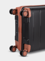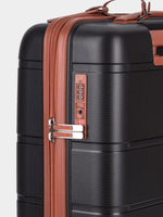 Board your flight with the 4-wheel Trolley Carry On case and have all your must-have items close at hand and safely secured with an integrated TSA combination lock. The Polo Monte Carlo Collection is exquisitely crafted in black with a Tan trim or in Mink with a Tan trim to create a look of timeless sophistication and style.