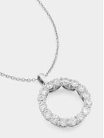 Expertly crafted in Sterling Silver, this radiant circle pendant on a chain glitters with round-cut Cubic Zirconia.