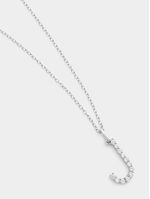 Expertly crafted in Sterling Silver, this “J” initial pendant on a chain catches the light with pavé set Cubic Zirconia.