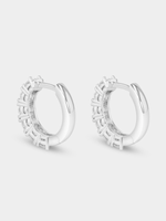 Expertly crafted in Sterling Silver, these petite hoop earrings catch the light with round-cut Cubic Zirconia.