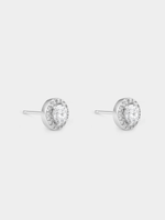 Expertly crafted in Sterling Silver, these beautiful stud earrings feature round-cut Cubic Zirconia in halo settings.