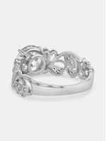 Expertly crafted in Sterling Silver, this vintage-style ring features a round-cut Cubic Zirconia and a broad intricately detailed band sparkling with pavé set stones.