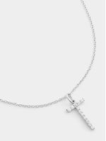 Expertly crafted in Sterling Silver, this “T” initial pendant on a chain catches the light with pavé set Cubic Zirconia.