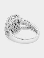 Crafted in Sterling Silver and inspired by the beauty of the Taj Mahal, this majestic ring features an emerald-cut Cubic Zirconia in a triple halo setting and a split-shank band that sparkles with pavé set stones.