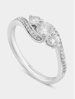Expertly crafted in Sterling Silver, this beautiful ring features a trilogy of round-cut Cubic Zirconia and an elegantly twisted band sparkling with pavé set stones.