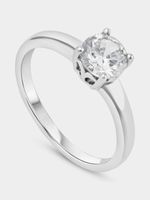 This classic Sterling Silver ring features a sparkling solitaire Cubic Zirconia in a 4 claw setting.