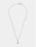 Expertly crafted in Sterling Silver, this radiant pendant on a chain features an oval-cut Cubic Zirconia in an elegant 4-claw setting and a bezel sparkling with pavé set stones.