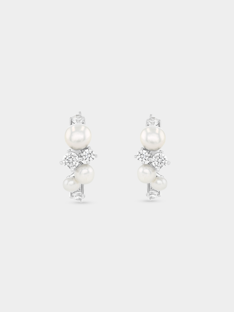 Expertly crafted in Sterling Silver, these beautiful hoop earrings feature lustrous Freshwater Pearls and round-cut Cubic Zirconia.