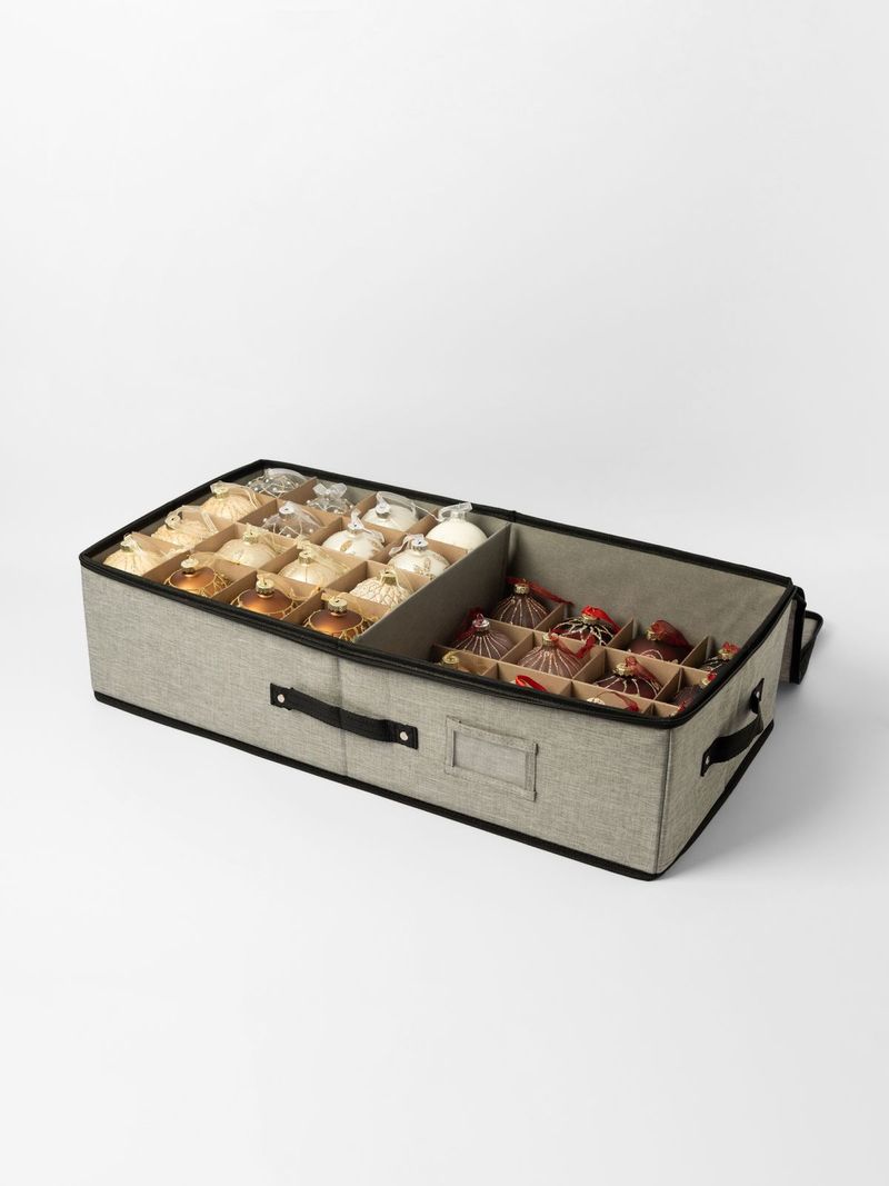 Keep your precious memories safe and organised with our Christmas Ornament Storage Bag. This sturdy multi-layer bag features four 16-section inserts to protect your baubles and decorations. This wider, shorter version of our ornament storage solution is ideal for low areas like underbed or shelf storage. Designed to keep your treasures protected, dust-free and in order, the convenient outer pocket makes it easy to label and locate when you need it.