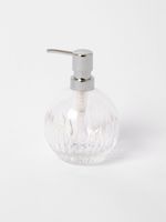 Traditional and stylish, our Clear Lined Glass range brings old-world charm to your bathroom. The Clear Lined Glass Soap Dispenser has a cut glass body in a delicate ball shape, paired with a chrome coloured pump, ideal for liquid soap or lotion. Combine it with other items from the same range for a cohesive look.