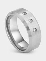 Expertly crafted in brushed Cobalt, this stylish ring features a trio of pavé set Cubic Zirconia and bevelled edges.