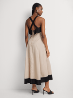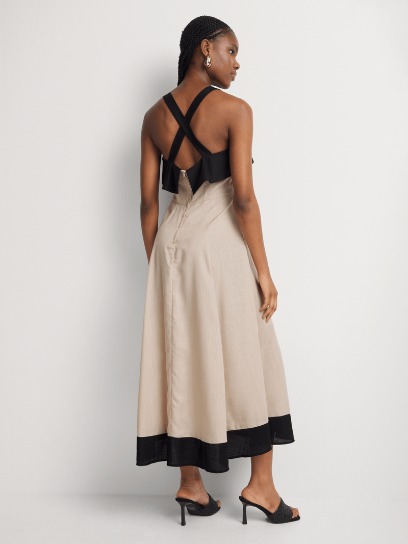 Our Colourblocked Fit & Flare Midi Dress brings sophisticated style to your summer wardrobe. Made from a lightweight viscose blend fabric, it's perfect for warm days and nights. The colourblock detail and flattering fit feel elegant and feminine. Wear it with strappy sandals or espadrille wedges.
