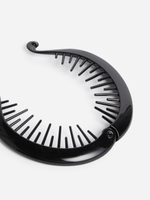 Extra fold feature. The large size makes it very easy to use and perfect for an all up look. For shorter hair it can be used for an all up look.