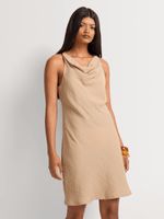 Our Draped Neck Column Dress is sexy and sophisticated with its draped neckline and above-knee length. Wear it with strappy heels and add a structured shoulder bag. Complete the look with classic jewellery.