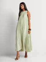 Our Satin Pleated Halterneck Column Dress is a beautiful choice for summer style. Wear it with strappy heels and bold jewellery for a dressy look, or add sneakers and a shopper for a different take.
