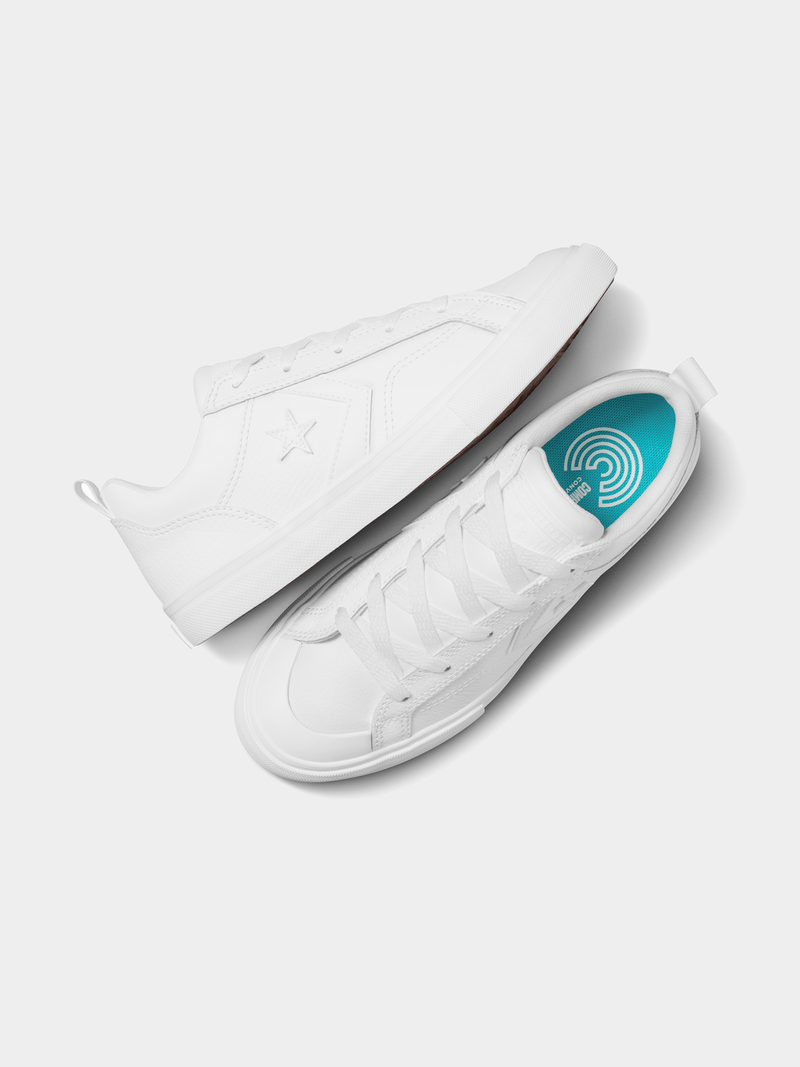 The Pro Blaze gives your style game a competitive edge. In mono white for a retro sport vibe that cant be beat. This ones so easy to take on and off-itll be playtime in no time.