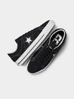 A trendy sneaker for juniors, the Converse One Star Pro Low in sleek black suede. Made with durable leather and suede for all-day comfort. Perfect for active kids who love to stay stylish. Easy to return if needed. Ideal for any casual occasion. Supplier style (171327C/1)