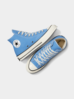 Elevate your casual style with these blue and white Chuck 70 Hi sneakers. Crafted from cotton woven fabric, these classic sneakers are comfortable and versatile. With a timeless design and durable construction, these sneakers are sure to become a staple in your wardrobe. Suitable for everyday wear, these sneakers are a must-have for any sneaker enthusiast.(Supplier Style:A10524C_ARC)