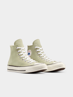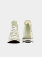 Step up your sneaker game with these Chuck 70 Leather HI Natural Green Sneakers. Crafted from premium leather, these kicks offer timeless style and superior comfort. Perfect for everyday wear, these sneakers are a must-have for any shoe collection. Lace up and step out in style!(Supplier Style:A10549C)