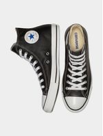 The Converse Chuck Taylor All Star Leather sneaker adds a rich, textured leather upper to the world's most iconic high top. The classic star-centered ankle patch, vulcanized rubber sole, brushed metal eyelets, reinforced rubber toe cap, padded footbed and cultural authenticity remain intact.