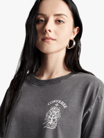 Ultra-soft, snow-wash fabric and a rose graphic (with just enough old-school charm) deliver a burst of freshness to all your favorite warm-weather 'fits. Supplier Code_10027762-A01.