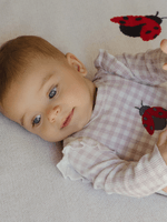 - Long sleeve onesie with press studs at crotch