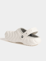 Everybody loves the comfort of the Crocs Classic Clog — and now the toasty lined version delivers more cozy style with a molded puff texture. The soft fleece liner and puffy texture make these comfy and stylish, and they're great for wearing around town or at home. Croslite™ foam construction keeps them light and easy to wear. The pivoting heel strap gives you a secure fit, or push it forward to just step in and go.(Supplier Style:210059-100)