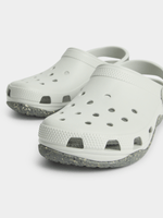 The Men's Classic Camo Grey Clog is a lightweight, water-friendly slip-on featuring a stylish slate grey camouflage print. Built with iconic Croslite™ foam cushioning, these shoes provide 360-degree comfort, featuring ventilation ports for breathability and a pivoting heel strap for a secure fit. Easy to clean, they offer a roomy fit and are customizable with Jibbitz™ charms(Supplier Style:211981-082)