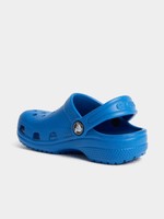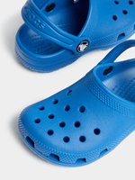 The Crocs Toddlers Classic Blue Clog. Made of durable EVA fabric, these clogs provide all-day comfort and support. Perfect for kids with a playful design. Embrace the ease and fun of Crocs without sacrificing style. (Supplier Style:206990-4KZ)