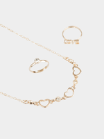 Shine bright with our gold heart necklace and ring set from Exact. Adorned with crystal detailing, this dainty duo adds a touch of sparkle to any outfit. Perfect for gifting or treating yourself.