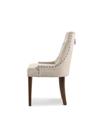 The Cuddle Back Dining Chair in LuxGuard is a timeless addition to your dining table. With a plush padded seat, sumptuous button tufted backrest and low profile armrests, it offers ultimate comfort for everyday meals and elegant dinner parties. A classic studded finish paired with metal ring detail completes the classic style of this elegant dining chair.
