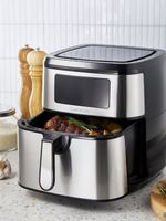 The Cuisinepro Air fryer offers a healthier way to cook by using 90% less oil with a faster cooking time and maximum crunch. The extra large family-sized 9L capacity makes it ideal for whole meals and generous portions. Rapid air technology circulates around to cook crispy on the outside and succulent on the inside - perfect for fries, meat, drumsticks, ribs, shellfish, fish, chicken, vegetables and more. It also preheats and even includes a setting for cakes for easy and fast baking.