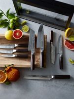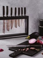 The Cuisine::pro Damashiro EMPEROR Hisa Knife Block includes 8 knives housed in a stylish knife block with clear sides to showcase your blades. Each Damashiro blade undergoes a premium Japanese leather sharpening process, providing an even sharper cutting blade.