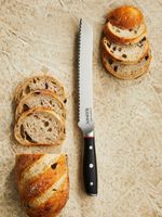 The Cuisine::pro iconiX Bread Knife allows you to cut thick crusted breads without crushing or tearing their soft centers. Its measured serrations help cut through foods with tough exteriors. Inspired by traditional German craftsmen and blade-smiths, the Cuisine::pro iconiX blades are made from premium German Stainless Steel.