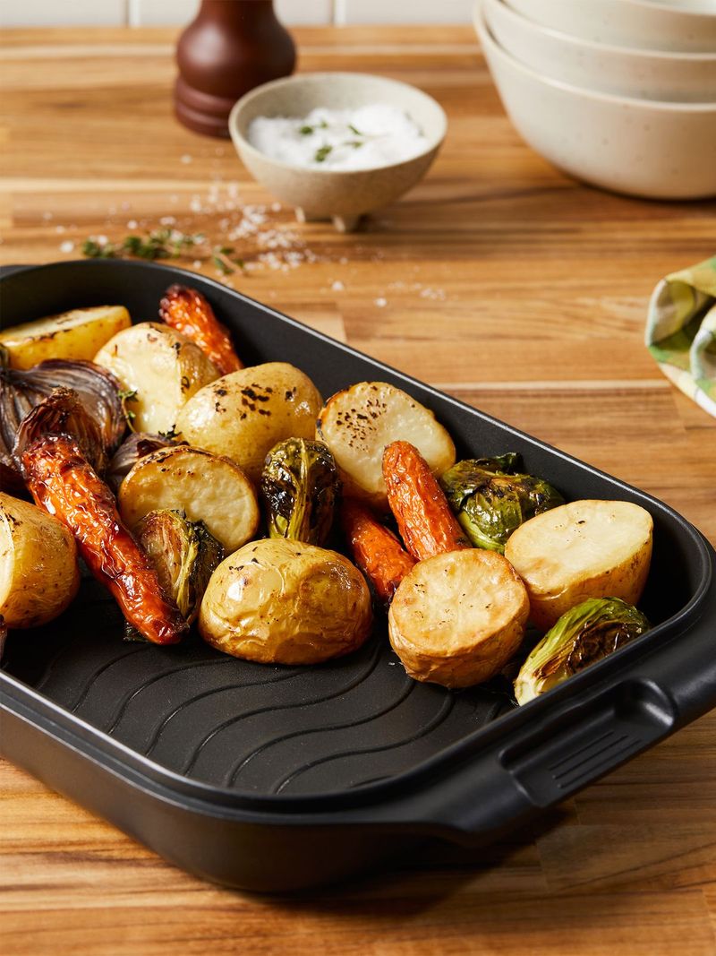Master roasting and grilling with the Cuisine::pro iD3 Roast Grill Pan. The multifunctional design made up of two parts can be used seperately or together, allowing you to grill, fry, roast, and bake a number of delicious recipes efficiently, whether on the stove, on the grill, or in the oven.